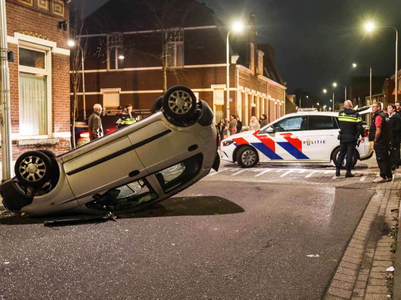 Auto rijdt twee straatnaamborden omver en botst op lantaarnpaal in Breda15 uur geledenEen auto heeft dinsdagavond op de Westerhagelaan in Breda twee straatnaamborden omver gereden en is daarbij over twee vluchtheuvels geknald. Het voertuig kwam uiteindelijk op zijn zijkant tot stilstand tegen een lantaarnpaal.