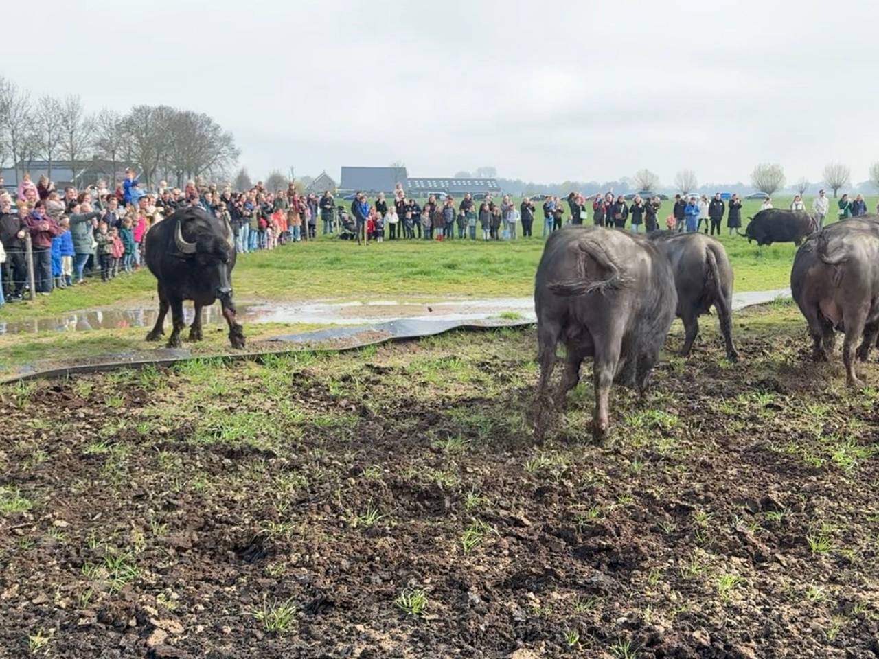 VIDEOWaterbuffels mogen voor het eerst de wei weer in: 'Goed begin van weekend'1 uur geledenHet was een bijzondere dag voor waterbuffels in Wijk en Aalburg. Zij mochten zaterdag voor het eerst weer de wei in na de winter en dat zorgde voor springende en rondrennende beesten. "De omstandigheden zijn ideaal. Het is niet te warm en niet te droog", vertelt boer Richard Verschure.