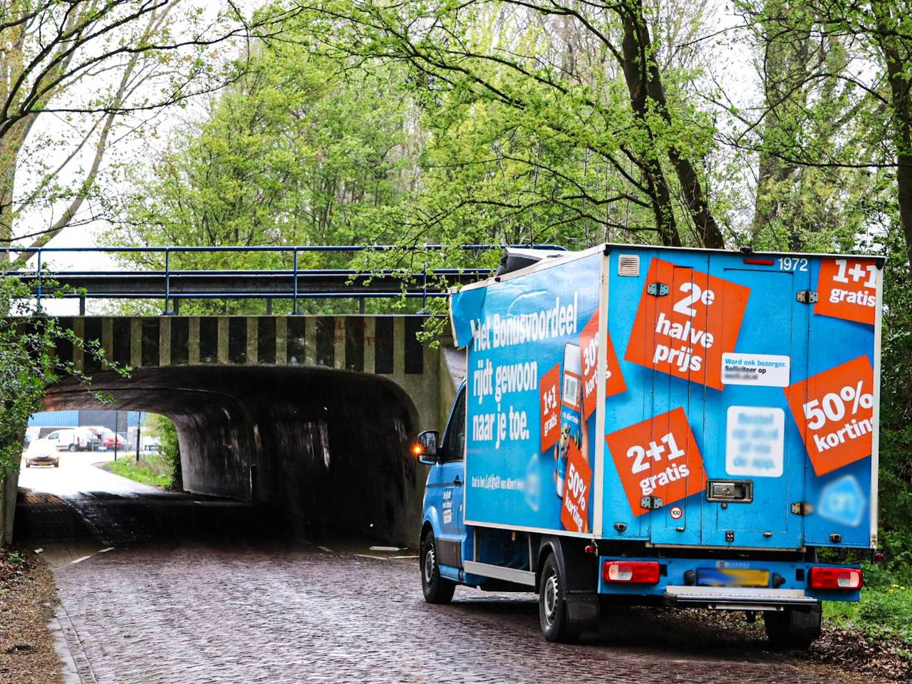 Bezorger rijdt busje kapot tegen berucht viaduct, dak scheurt openEen bestuurder van een bezorgbusje heeft zaterdagmiddag zijn wagen kapotgereden onder een berucht viaduct aan de Blokenweg in Waspik. Het dak van de bakwagen scheurde open door de klap.