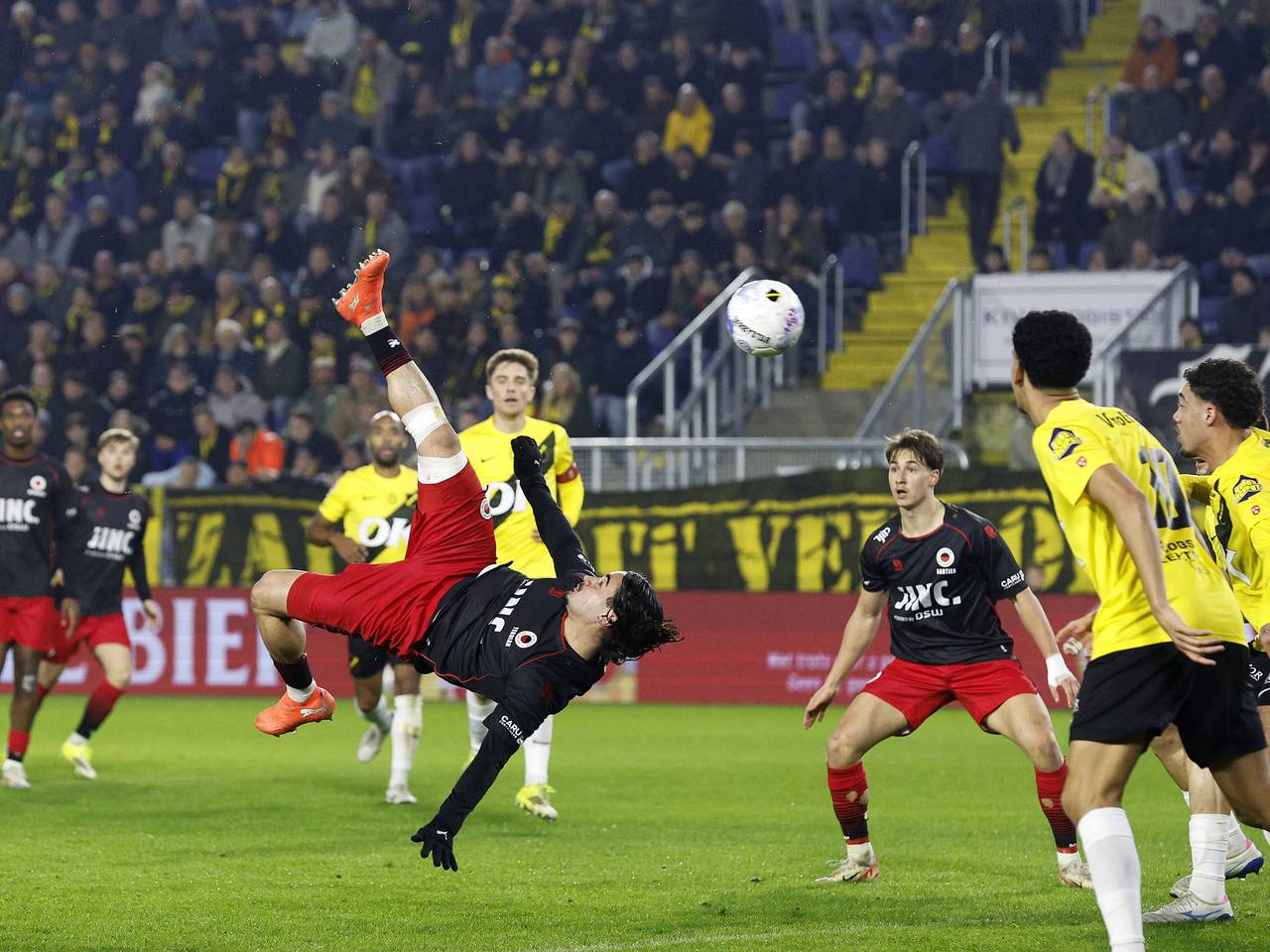 NAC verliest eerste wedstrijd in belangrijke maand na vroege rode kaartNAC Breda heeft vrijdag geen punt overgehouden aan het duel met Excelsior. Tijdens het 'Avondje NAC' kreeg Rio Hillen na tien minuten een rode kaart, waarna NAC al snel achter de feiten aanliep en met 0-2 verloor. Voor NAC was dit de eerste wedstrijd in de belangrijke maand waarin de Parel van het Zuiden alle concurrenten in de strijd tegen degradatie treft.