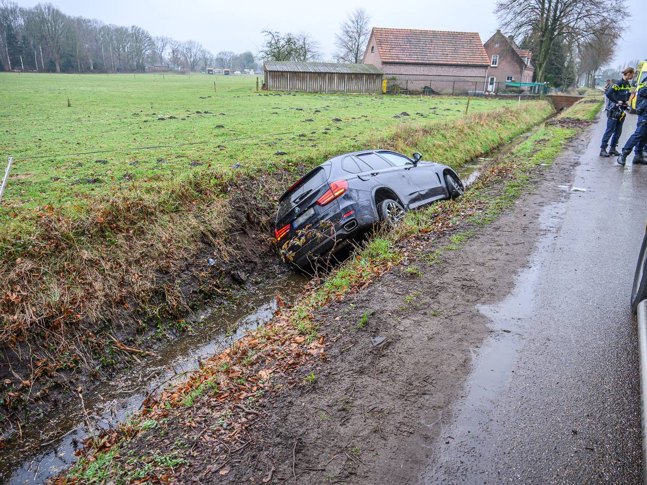 VIDEOProefrit met auto eindigt ondersteboven in de sloot in Heeswijk DintherGisterenEen vrouw is vrijdagmiddag met haar auto in de sloot beland op de Goueverneursweg in Heeswijk Dinther. De vrouw raakte niet gewond. De auto, waarmee de vrouw een proefrit maakte, raakte fors beschadigd.