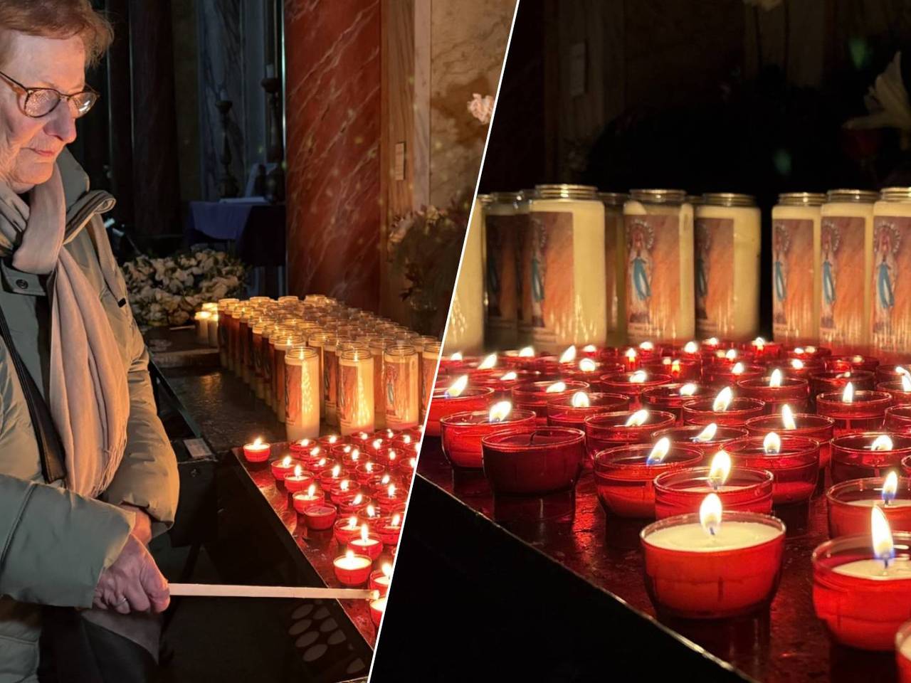 Kaarsjes aansteken brengt warmte in basiliek: 'Voor vrede in de wereld'1 uur geledenHet herdenken van overleden dierbaren, geluk vragen voor het nieuwe jaar of die ene speciale persoon een hart onder de riem steken. In de donkere dagen voor kerst is de behoefte aan warmte groot. Ook bij de mensen die voor kerst in de basiliek van Oudenbosch een kaarsje komen aansteken.