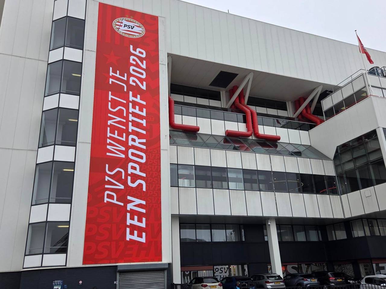 VIDEOPVS... euh... PSV blundert met metershoog spandoekGisterenEen mooie geste van PSV. De Eindhovense koploper wenst iedereen via een metershoog spandoek aan het stadion een sportief 2026. Echter is de tekst niet goed gecontroleerd. In plaats van PSV staat er PVS.