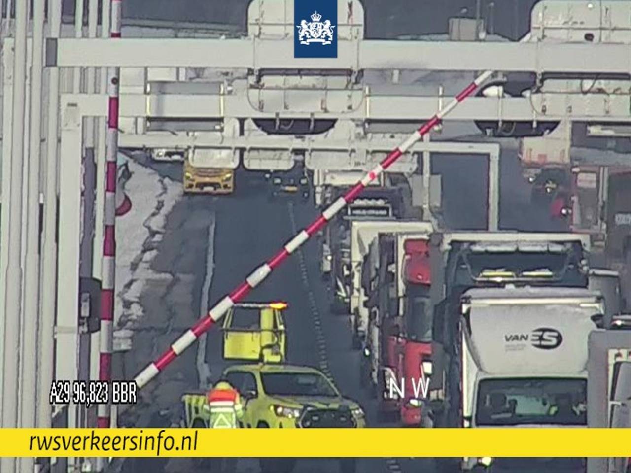 Flinke vertraging richting Bergen op Zoom door aangereden slagboommaandagOp de A29 van Rotterdam richting Bergen op Zoom stond maandagmiddag een flinke file, omdat er een slagboom op de Haringvlietbrug was aangereden. De rechterrijstrook was tussen afrit Oud-Beijerland en knooppunt Hellegatsplein een tijdlang dicht.