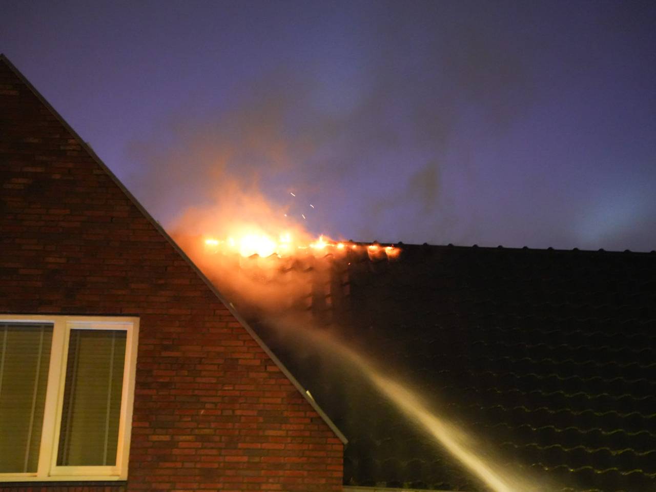 VIDEOVlammen slaan uit dak van huis in Loon op Zand15 uur geledenIn het dak van een huis aan de Van Salm Salmstraat in Loon op Zand is woensdagavond brand uitgebroken. Het vuur woedde in de nok van het dak en is vermoedelijk ontstaan door vuurwerk dat voor het huis werd afgestoken.
