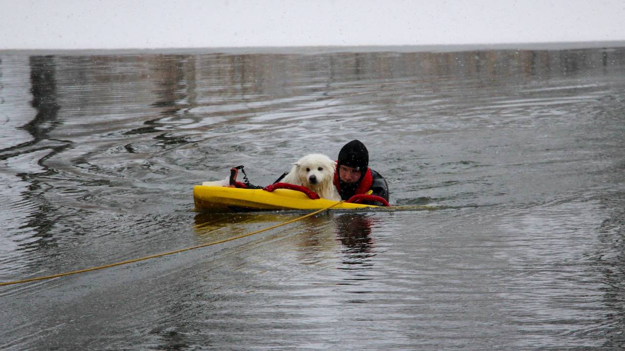 Hond zakt door ijs, duikers schieten te hulp en krijgen applausDe brandweer moest zaterdagmorgen in actie komen in Oss nadat een hond door het ijs was gezakt. Het lukte de hond niet meer zelf aan de kant te komen door het ijs aan de oevers.