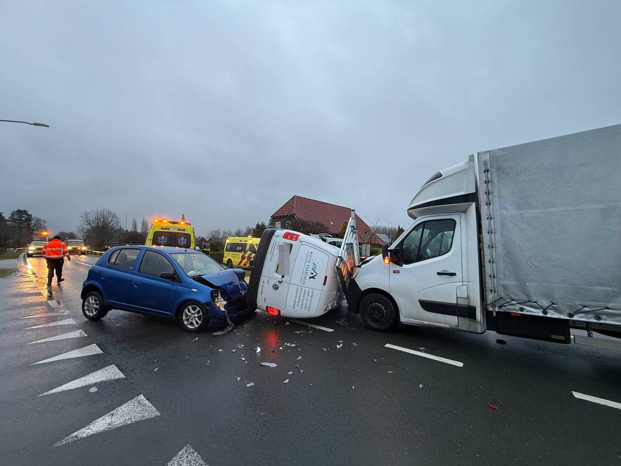 Bestelbus belandt op kant na botsing in SchijndelOp een kruising op de Boxtelseweg in Schijndel zijn vrijdagochtend een auto, bestelbus en bakwagen met elkaar in botsing gekomen.