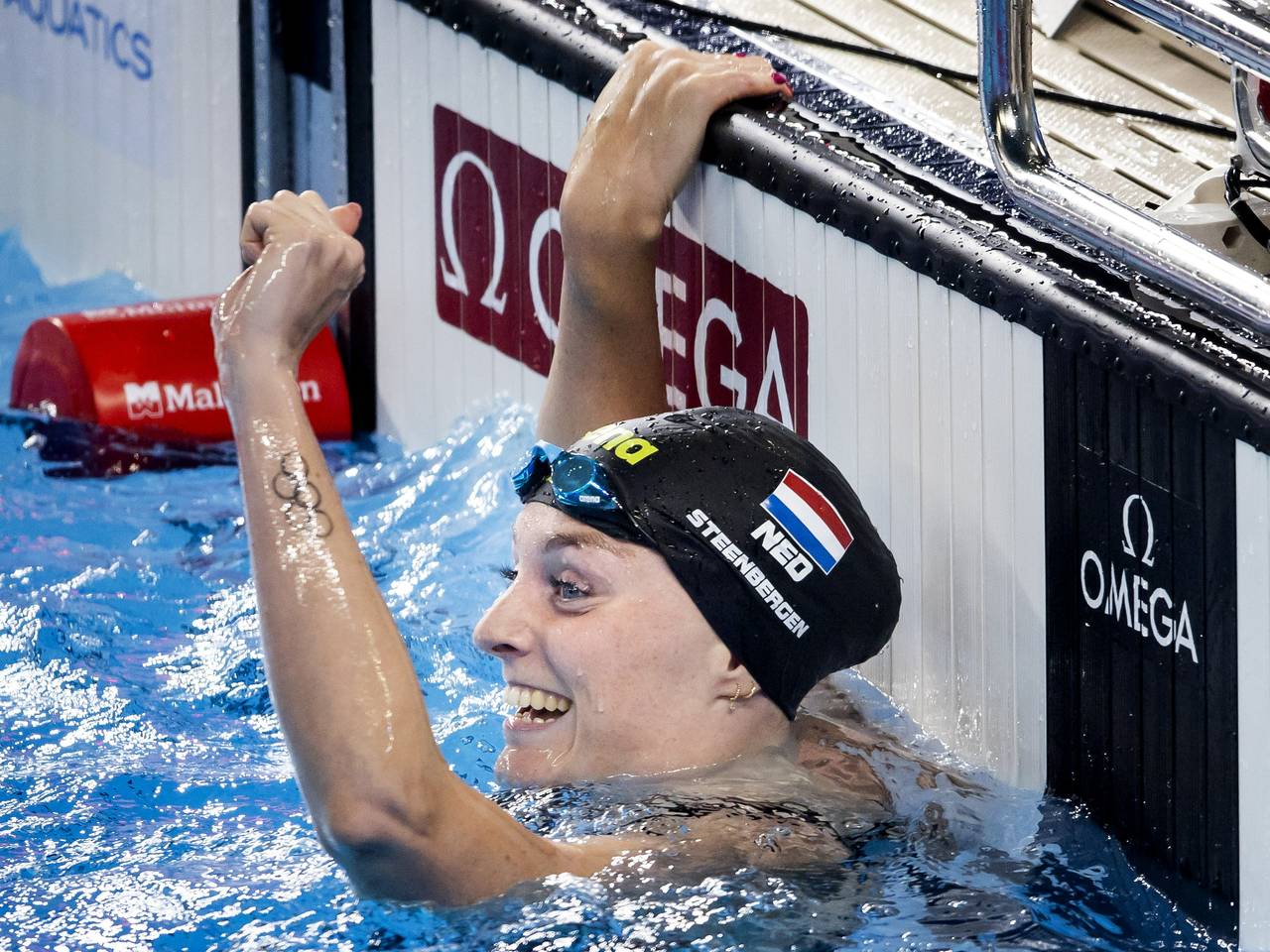 Marrit Steenbergen wint goud met estafetteploeg op EK kortebaan16 uur geledenDe Nederlandse estafettezwemsters hebben bij de Europese kampioenschappen kortebaan in het Poolse Lublin de titel veroverd op de 4x50 meter vrije slag. Marrit Steenbergen (25) uit Geldrop kwam samen met Milou van Wijk , Tessa Giele en Valerie van Roon tot een tijd van 1.33,85.