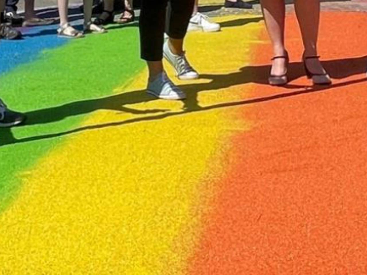 Regenboogpad in Breda is te glad en daarom tijdelijk niet zichtbaar19 uur geledenHet regenboogpad bij het Chassé Theater in Breda is dinsdag aangepast door stratenmakers. De stenen waarop de regenboogkleuren voorheen zichtbaar waren zijn omgedraaid, omdat de gekleurde zijde te glad was.