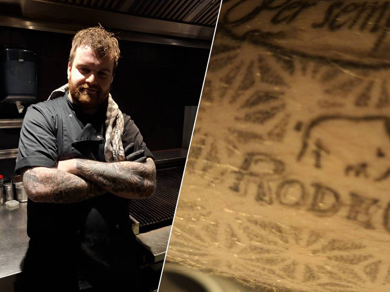 MIJN TATTOO EN ZIJN VERHAALDjordin heeft logo van zijn werk op zijn arm gezet: ‘Je bent knettergek’zaterdagHet logo van je werk laten tatoeëren op je lichaam? De meeste mensen moeten er niet aan denken, maar op de arm van Djordin Claassens (28) uit Dongen prijkt toch echt de naam van het restaurant waar hij werkt. “Ze zeiden dat ik het niet zou doen, maar ik ben de volgende dag naar de tattooshop gereden.”