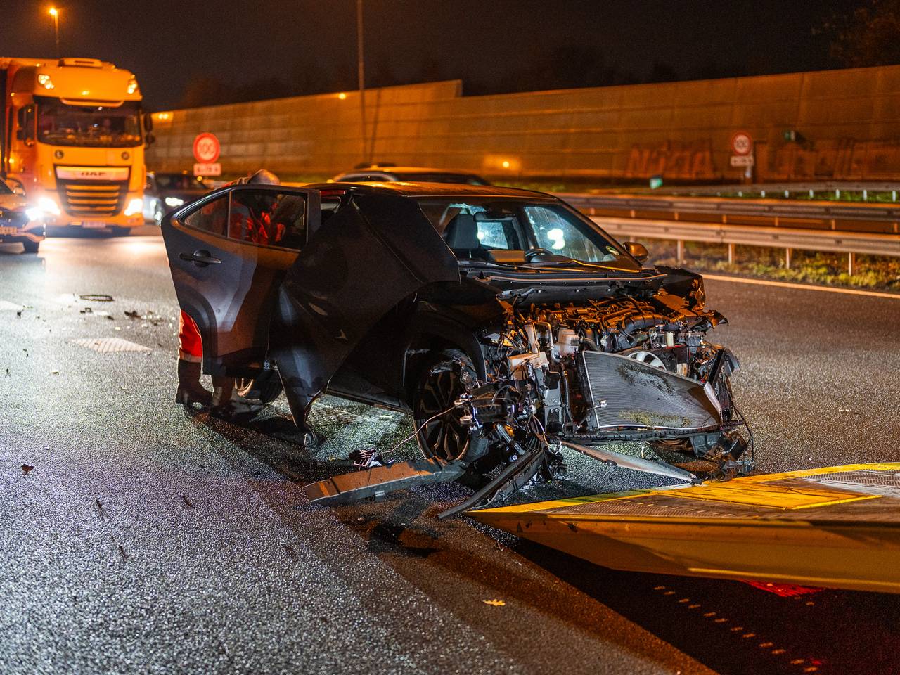 Enorme schade aan auto's na kettingbotsing op A1618 uur geledenTwee auto's zijn flink beschadigd geraakt na een kettingbotsing op de A16 bij Prinsenbeek vrijdagavond. Een van de wagens botste op een vrachtwagen, de ander weer tegen die auto. De weg lag vol brokstukken.