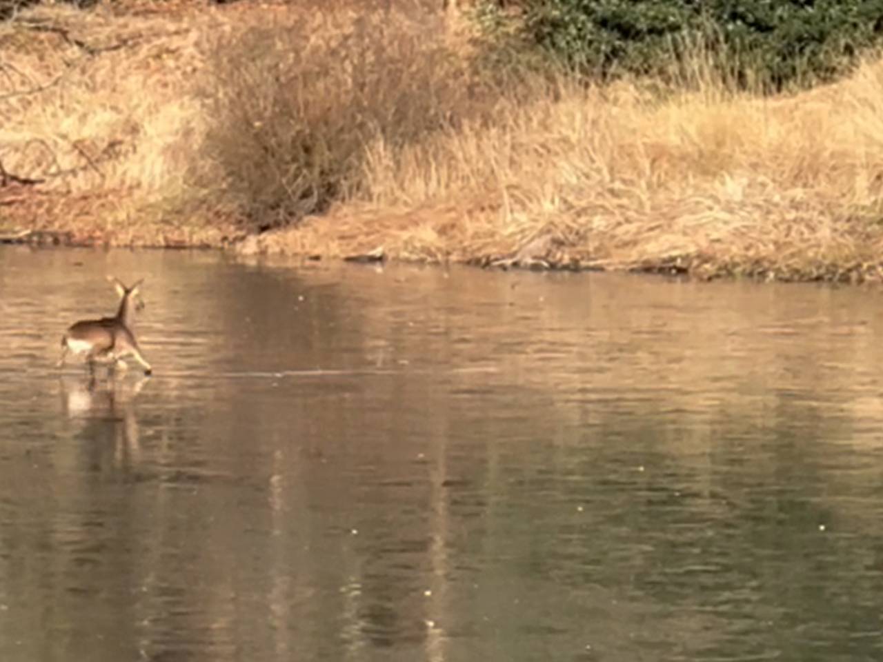 VIDEOBambi on ice: reekalf worstelt met bevroren meertje, bekijk de beelden8 uur geledenHet leek wel een scène uit een Disneyfilm vrijdagmiddag in de natuur in Vught: een reekalf op een zeer onvrijwillige auditie voor Bambi on Ice. Waar moederree in één elegante sprong naar de overkant schoot, ging haar jong meer richting zwabberende koorddanser. Pootjes alle kanten op, kontje erachteraan en paniek in de oogjes. Hoe sneu het er ook uitziet, je kunt het beestje in zo'n situatie beter niet te hulp schieten, waarschuwt boswachter Frans Kapteins.