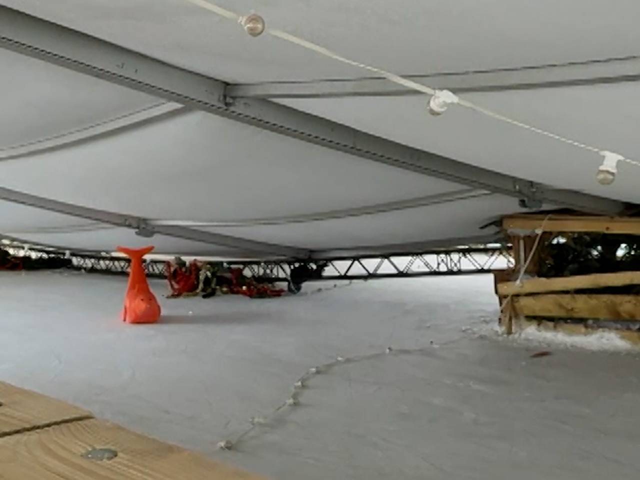 VIDEODak schaatsbaan ingestort door sneeuw, kinderen op tijd van ijs gehaaldzaterdagHet dak van een schaatsbaan bij de IJzeren Man in Vught is zaterdagmiddag ingestort. Het gaat om een tent waarin de tijdelijke ijsbaan is gevestigd. Er zijn geen mensen gewond geraakt, maar de schade is groot.
