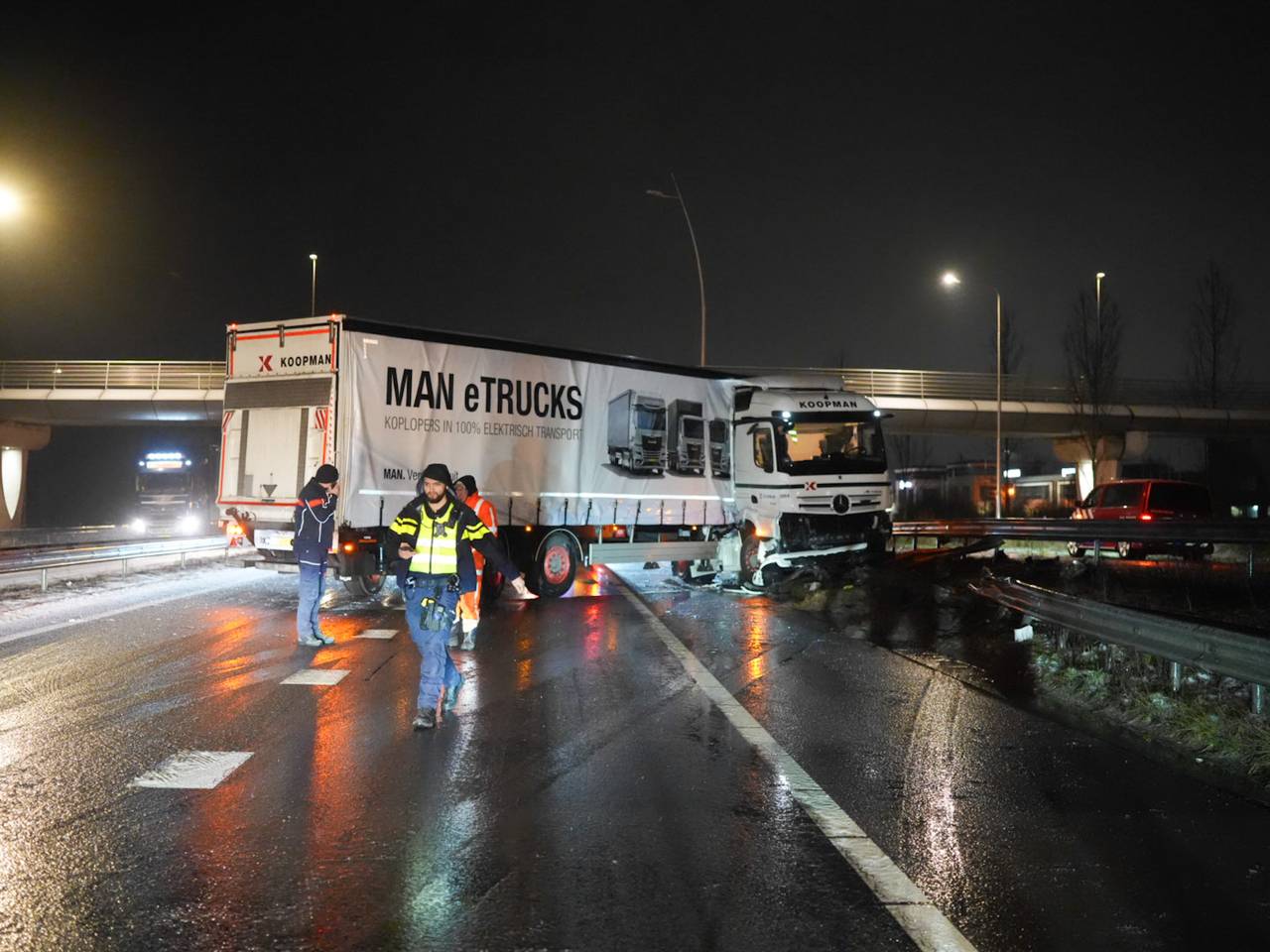 VIDEOGeschaarde vrachtwagen door glad wegdek bij Waalwijk, bestuurder gewond2 uur geledenEen vrachtwagen is donderdagochtend door het gladde wegdek geschaard op de N261 ter hoogte van Waalwijk in de richting van de A59. De bestuurder raakte gewond en is met een ambulance naar het ziekenhuis gebracht.