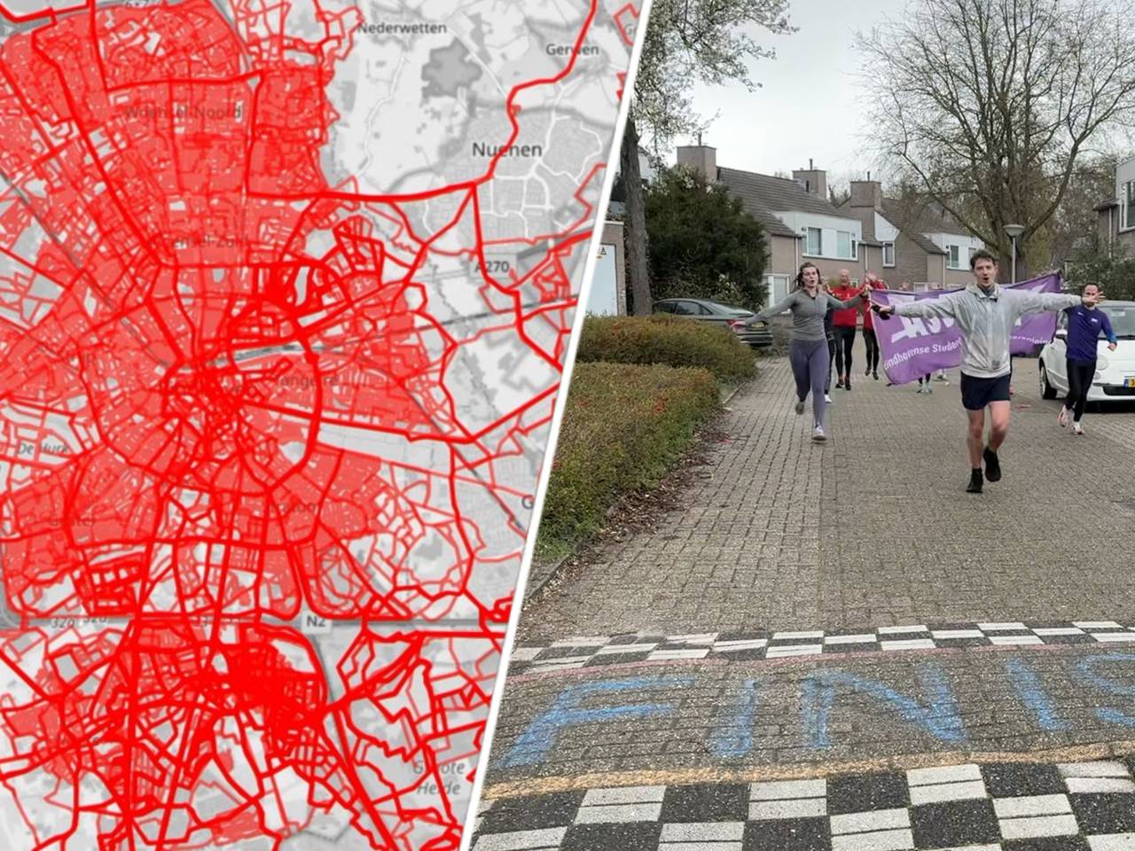 Missie voltooid: Maron vinkt alle straten van deze stad in hardloopappGisterenWeet jij hoeveel straten Eindhoven precies heeft? Maron Janssen (22) uit Waalre wel. Hij zag ze alle 2.756 tijdens het hardlopen door de stad. Het was zijn missie om op hardloop-app Strava de hele kaart van Eindhoven in te kleuren. Zaterdag liep hij de laatste kilometers van zijn bijzondere hardlooptocht.