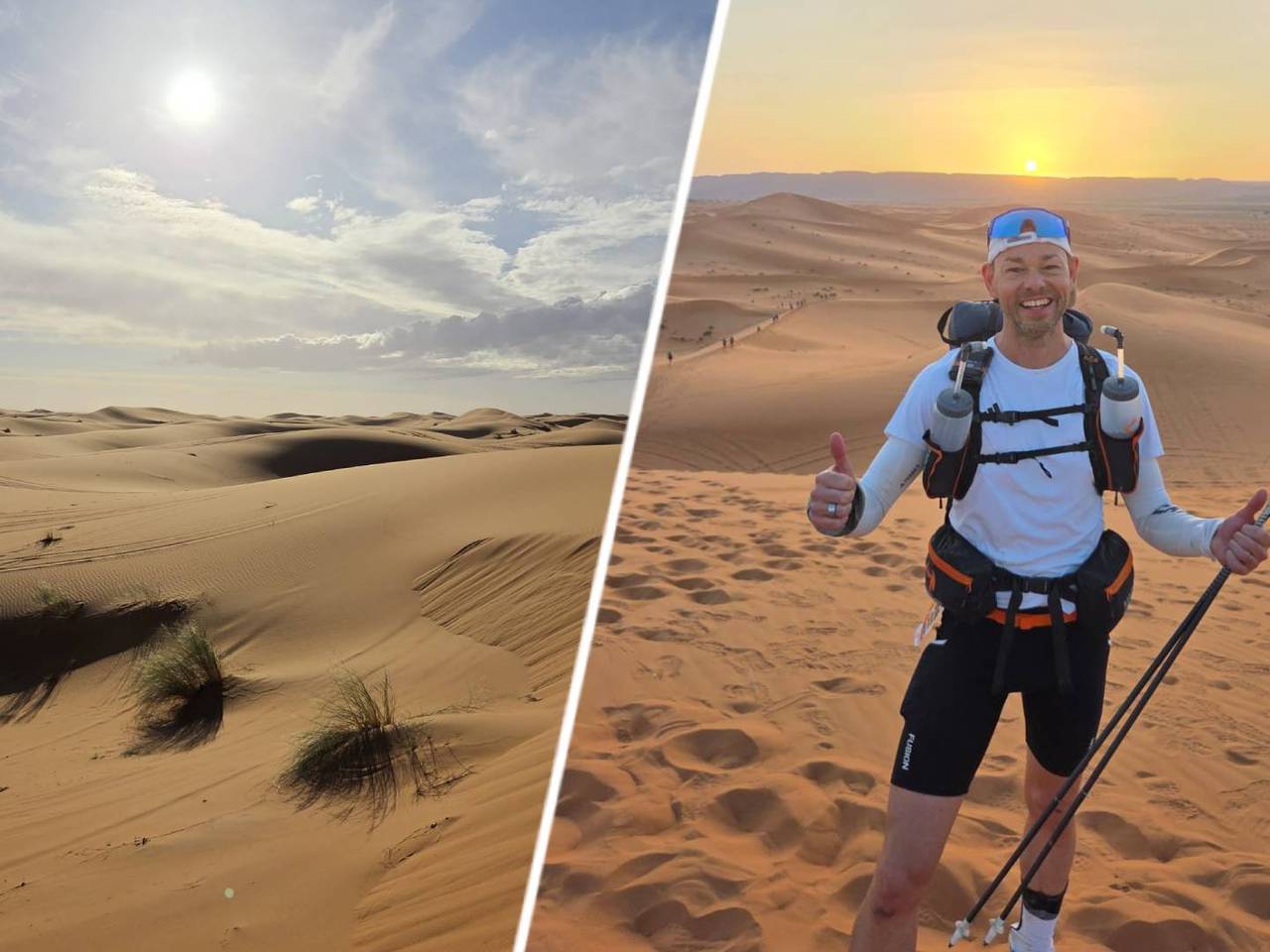 André rende 270 kilometer door de woestijn: 'Het was overleven'12 uur geledenHet is hem gelukt. André Bockholts (46) uit Veldhoven heeft de Marathon des Sables, een van de zwaarste hardloopwedstrijden ter wereld, uitgelopen. Eén week lang rende hij 270 kilometer door een bloedhete woestijn in Marokko. “Het was emotioneel best zwaar.”