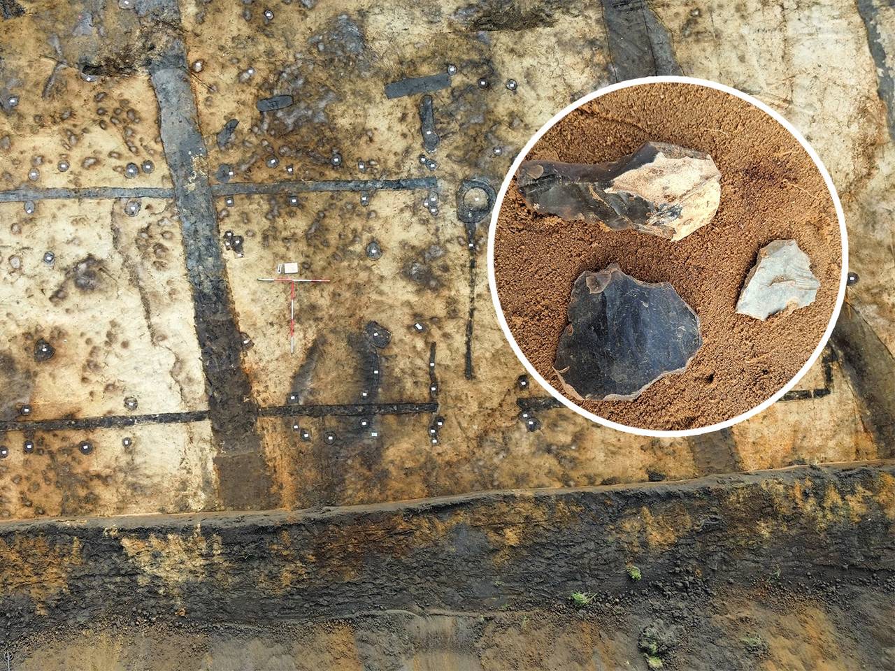 Bijzondere archeologische vondst vertraagt bouwproject: 'Heel zeldzaam'GisterenDe bouw van 29 tijdelijke sociale huurwoningen aan de Schoonstraat in Heesch loopt vertraging op door bijzondere archeologische vondsten. Onderzoekers vonden op die plek namelijk een complete Romeinse boerderij én vuursteenresten uit de middensteentijd. "Dit vinden we heel zelden", vertelt archeoloog Nina Magdelijns.