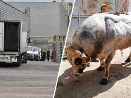 VIDEOMan gedood door stier bij slachterij, ton boete geëist voor transporteurdonderdagEen enorme stier uitladen bij slachterij Vion in Tilburg ging een paar jaar geleden gruwelijk mis. De chauffeur werd verrast door het beest van 1200 kilo dat hem plotseling achterna rende en hem tot twee keer toe spietste met zijn hoorns. De man overleed en justitie eiste donderdag een boete van 100.000 euro in de rechtbank in Den Bosch tegen het transportbedrijf waar de man voor werkte.