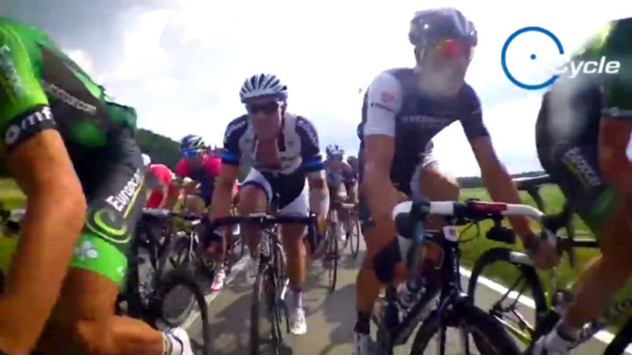 Tijdens een wielerwedstrijd kan het er soms heftig aan toe gaan. Maar van zo dichtbij zie je dat maar zelden. Wielrenner Koen de Kort uit Liempde had tijdens de vijfde etappe van de Ronde van Zwitserland een cameraatje onder zijn zadel zitten.