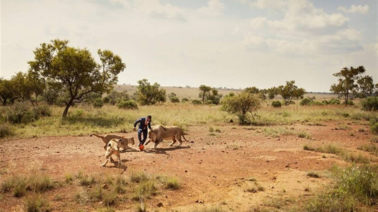 De beelden waarop Kevin Richardson voetbalt met wilde leeuwen, waren eigenlijk voor een WK-reclame van het Bredase kledingbedrijf Van Gils en de KNVB.