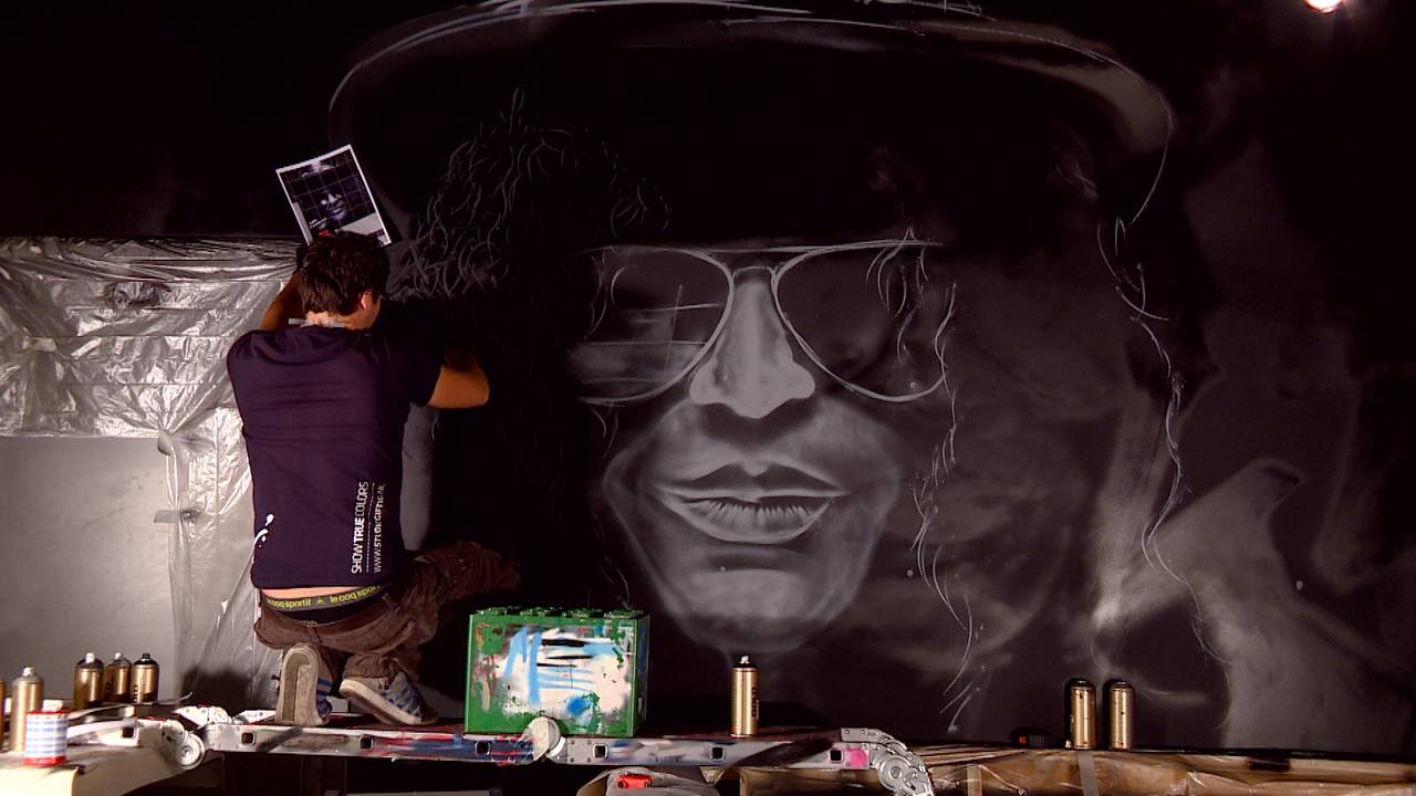 Graffiti-kunstenaars uit Veldhoven versieren Ziggo Dome met portret gitaarlegende Slash