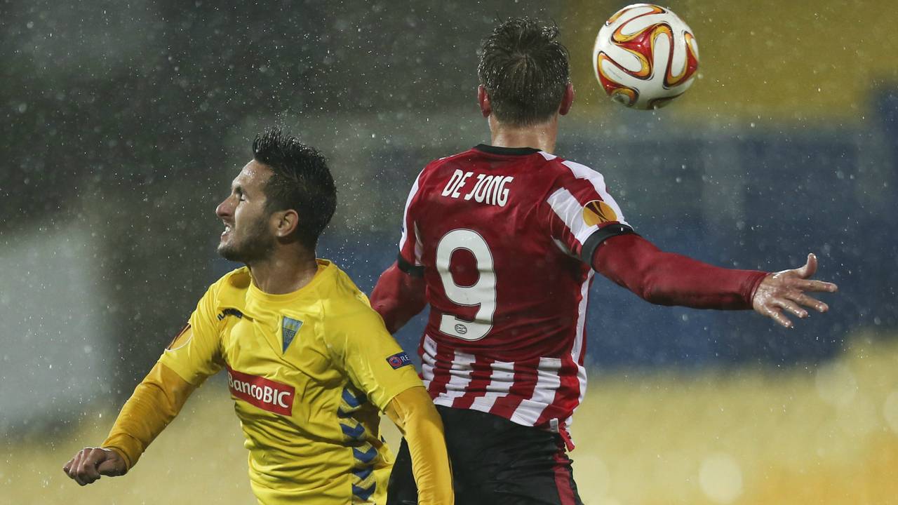 Het regende doelpuntenOp de doorweekte grasmat regende het in de eerste helft ook doelpunten en kansen. Memphis Depay schoot PSV al na zes minuten op voorsprong (0-1). Tozé bracht de thuisploeg in de twaalfde minuut op gelijke hoogte.