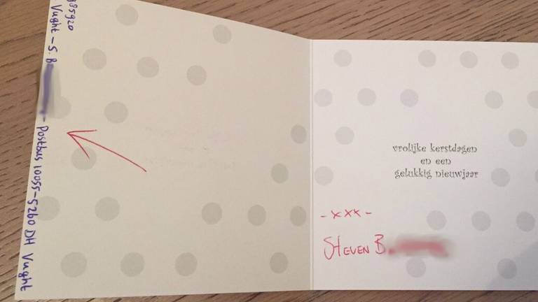 Geen meldingen bij politieEen politiewoordvoerder in de regio West-Brabant zei dinsdagavond dat niemand zich bij de politie heeft gemeld omdat die persoon een met de naam van B. ondertekende kerstkaart heeft ontvangen.