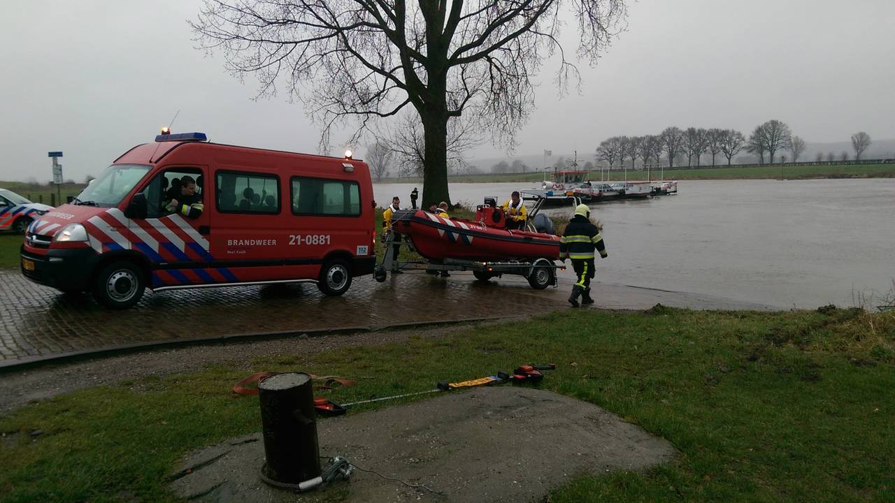 Veilig aan wal getrokkenNa de breuk raakte de pont stuurloos. Brandweerlieden haalden met bootjes de zes passagiers van boord gehaald.