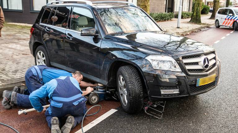 Auto omhoog met krikDe man raakte gewond en werd met onbekende verwondingen naar het ziekenhuis gebracht. Medewerkers van het bedrijf waar de automobilist vandaan kwam, haalden later de fiets onder de auto vandaan met een krik.