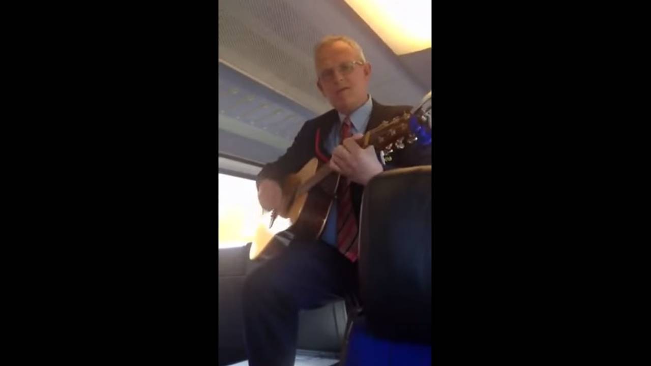 Na al het nieuws over mishandelde conducteurs ontspon zich in de trein bij Eindhoven een mooi tafereel. Een groep studenten pingelde wat op hun gitaren in de coupé, toen de conducteur vroeg of hij mee mocht spelen. Het samenspel werd gefilmd.