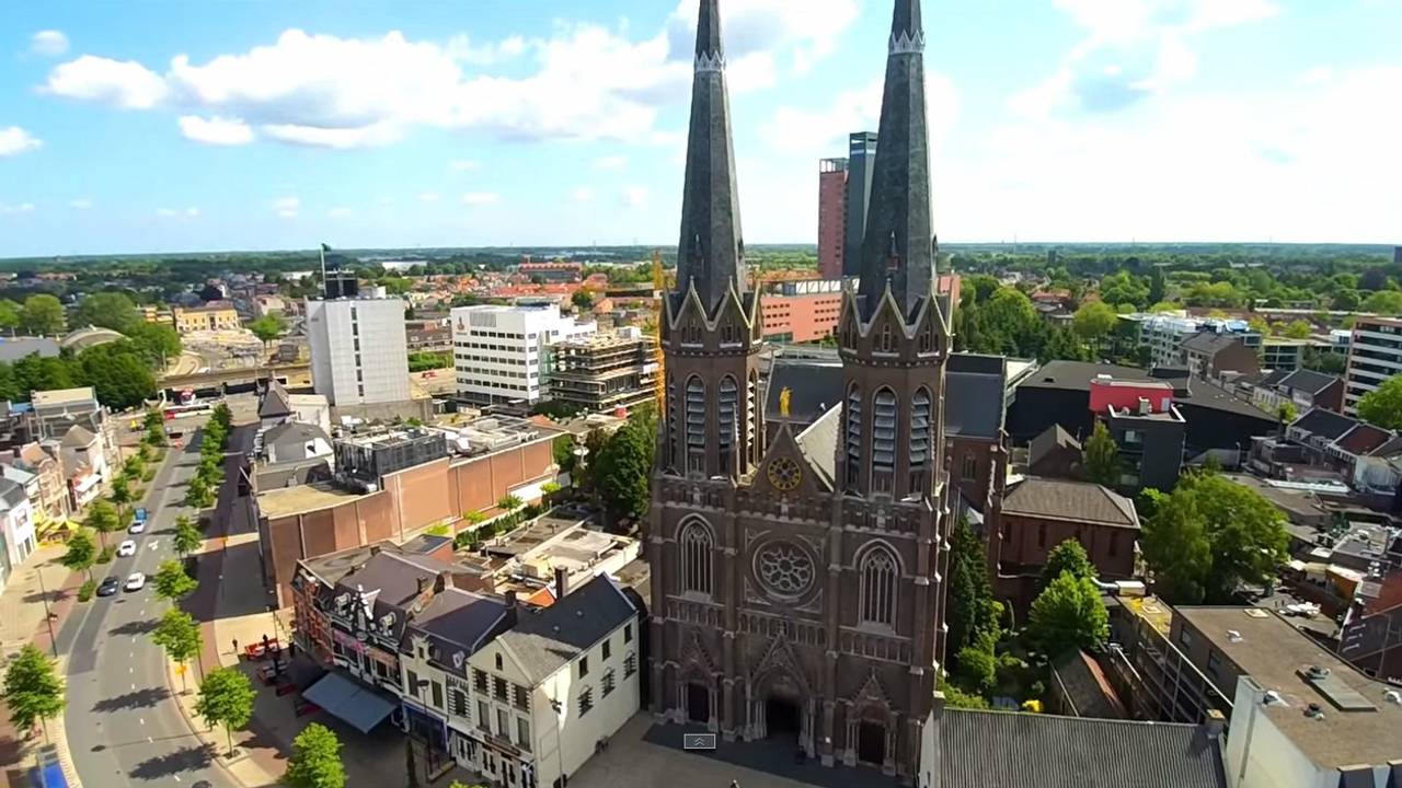 De Heuvelse kerk en de Heikese kerk zijn eveneens vanuit de lucht gefilmd. En de kijker vliegt met de drone boven het park De Oude Warande.