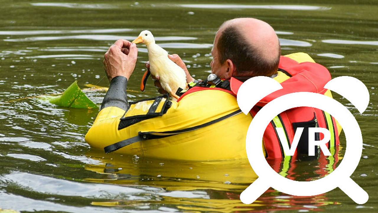- O ja, er werd ook nog een eendje gered van een vishaak.