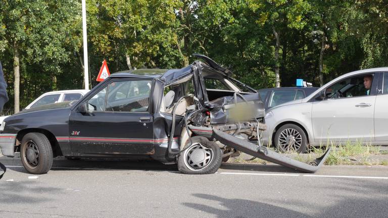 Auto gehalveerd na botsing met vrachtwagen in Breda, bestuurder gewond