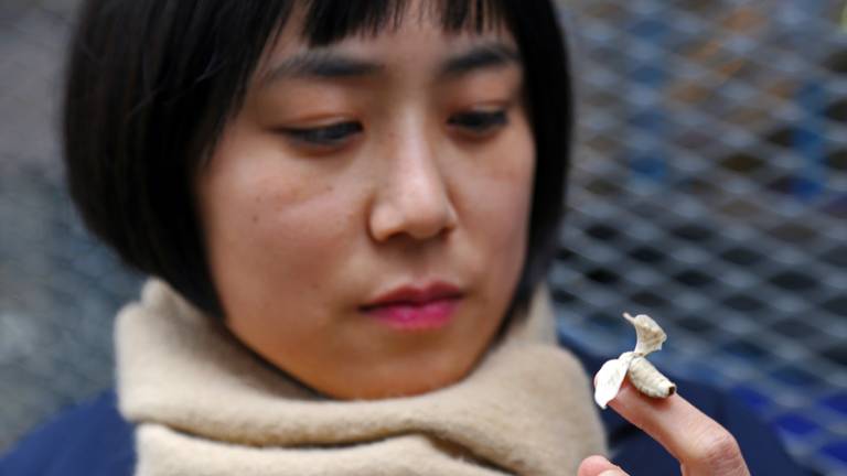 Zijdevlinders en rupsenEven verderop staat de Japanse Kumi Oda, die met Circle of Silk het proces van de zijdevlinder en haar rupsen toont. Van eitje tot vlinder, de diertjes kruipen rond in kleine doosjes, bungelend aan het plafond. Een Koreaanse kunstenares heeft een koffertje gemaakt voor als je op vakantie gaat, speciaal voor je dierbaarste bezit. Brieven, een knuffelbeer, kleine kostbaarheden met een grote emotionele waarde, alles krijgt een eigen plek. En bij Emma Verhoeven kun je op vakantie zonder te reizen, met een virtuele bril op het hoofd en je voeten in een emmer zand.