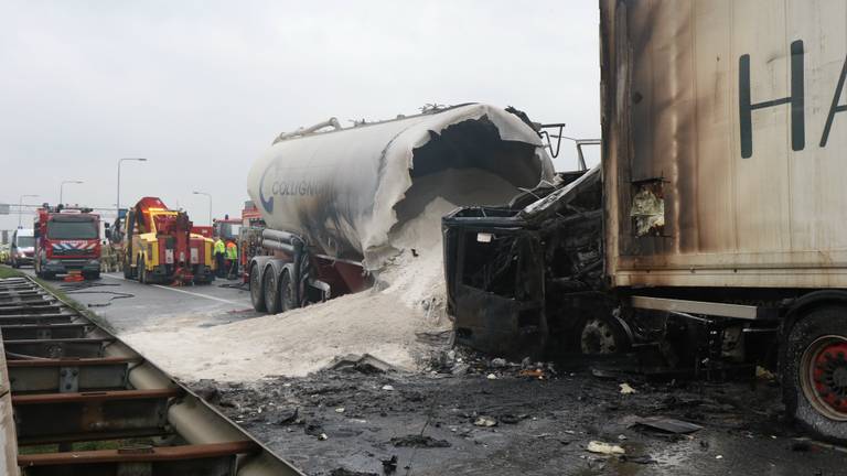 Dinsdag botsten er twee vrachtwagens op elkaar tussen de knooppunten Sabina en Hellegatsplein. Bij het ongeluk kwam een van de chauffeurs om het leven. Ook kwam er een grote lading kalk op de weg te liggen.