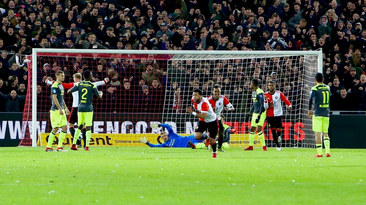 59' Nicolai Jörgensen lijkt twee keer te scoren voor Feyenoord. De eerste keer brengt Jeroen Zoet redding op een intikker van de Deense spits. Nog geen minuut later scoort Jörgensen met een prachtige stift. De Kuip ontploft, maar videoscheidsrechter Kevin Blom annuleert de treffer vanwege buitenspel. Het blijft 2-0.