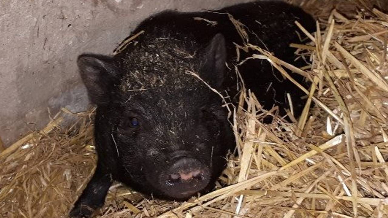'Verweesd' hangbuikzwijntje vindt nieuw thuis tussen soortgenoten