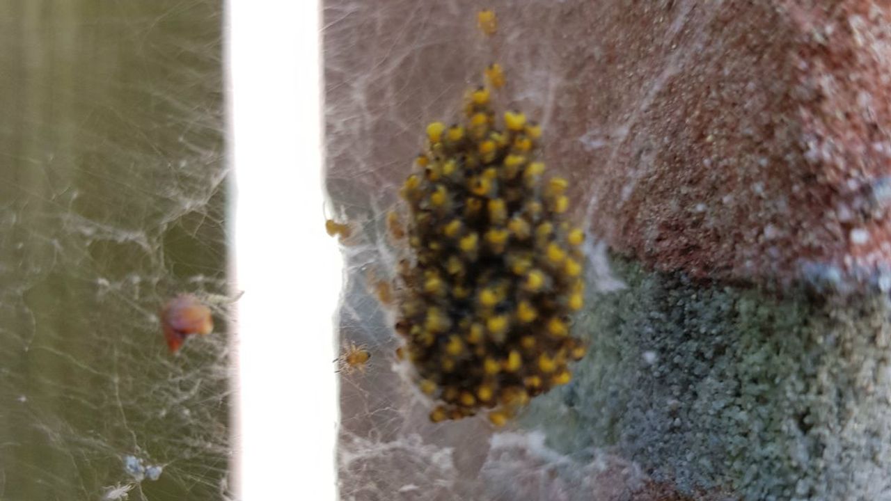 Op de foto die Auke van Veen instuurde, zie je een paar gelige bolletjes tegen elkaar liggen. Auke vermoedt dat dit spinneneitjes zijn en daarin heeft ze gelijk. Wat je op de foto ziet, zijn de eitjes van een kruisspin. De vrouwtjes van de kruisspin leggen de eitjes tijdens het eind van de herfst in een cocon van spinsel en zo overwinteren ze. In het voorjaar komen de jonge spinnetjes tevoorschijn. Heel opvallend is de gele lichaamskleur. Soms zie je ze zo’n groep spinnetjes ver uit elkaar actief zijn. Maar stoot je dan tegen een spinseldraad, dan kruipen ze heel snel weer bij elkaar. De spiderlings - zo worden ze genoemd - leven de eerste tijd van het voedsel in hun dooier. Zoiets duurt ongeveer maximaal tien dagen. Is dat voedsel op, dan klimmen ze zo hoog mogelijk in een plant. Ze maken dan een lange draad. Die wordt door de wind opgepakt en neemt de jonge spin zo mee de lucht in. Zo verspreiden de kleine spinnetjes zich en kunnen ze honderden meters verder terechtkomen.