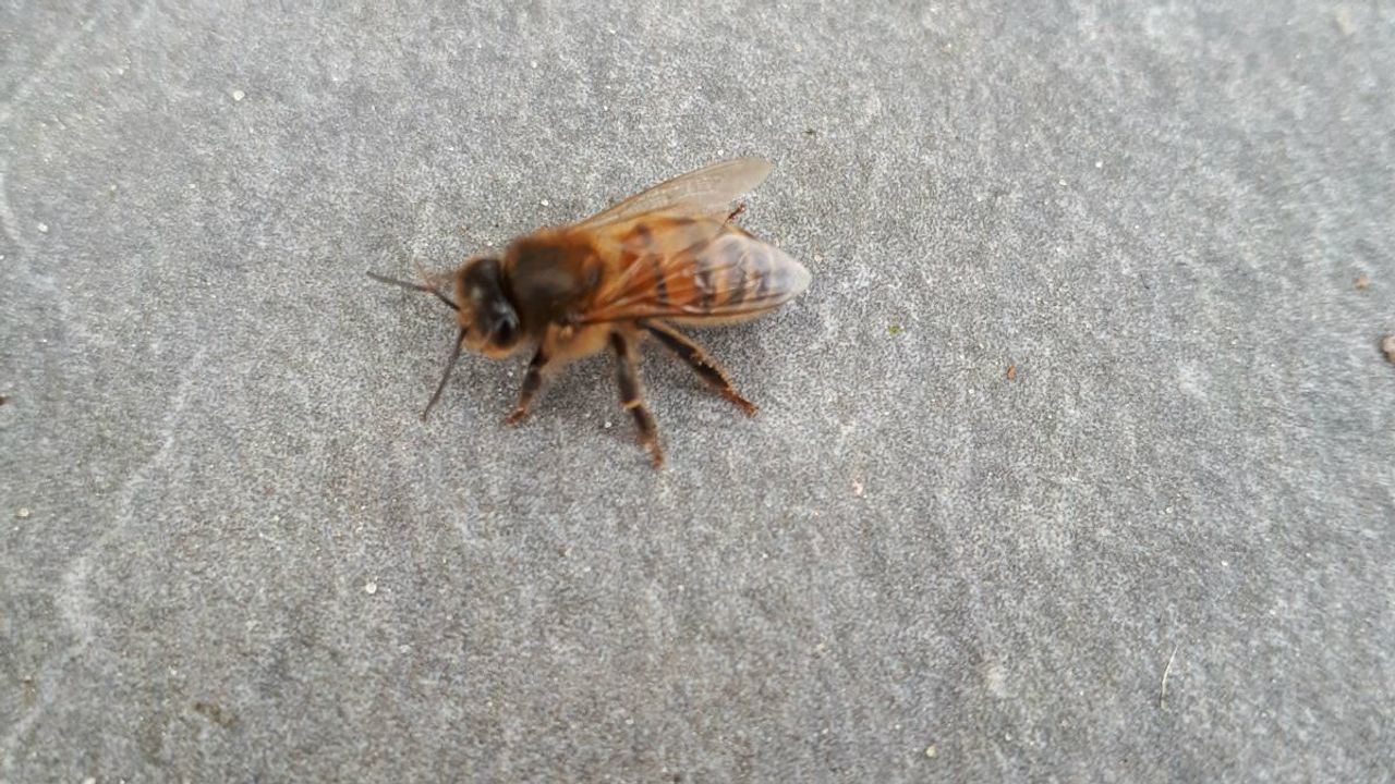 Bij 'buuf' Adeline Besselink vloog deze week een insect tegen het raam en ze vroeg zich af of het een wesp of bij was. Bij het zien van de foto dacht ik eerst aan een zweefvlieg, maar bij nadere beschouwing is het toch een bij. Een van het geslacht der zandbijen. Dan kom je op een lastig terrein, want het geslacht zandbijen kent wereldwijd wel meer dan 1300 soorten. Daarmee is het een van de grootste bijengeslachten en dus hebben ze dit geslacht ook nog eens onderverdeeld in ongeveer honderd 'ondergeslachten'. Tot slot is er ook nog eens een groot aantal soorten van dit geslacht onbekend en weet men niet tot welk ondergeslacht die dan weer behoren. Om er dan toch een naam op te plakken, kom ik op de naam grasbij. Deze soort zie je meestal voor het eerst in maart en komen uit nesten in gazons en tuinen.