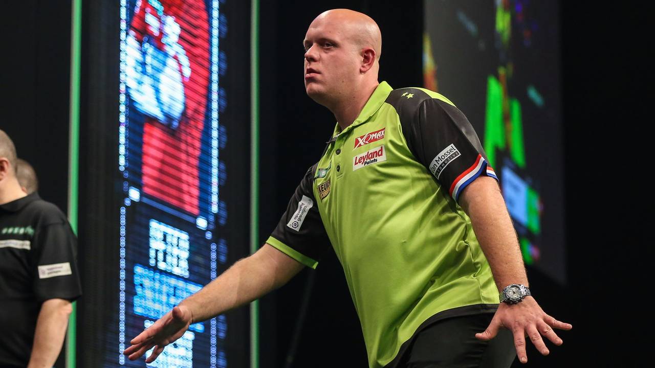Van Gerwen won een dag eerder nog het vijfde toernooi in de Players Championship-reeks. De nummer één van de wereld won nog wel zijn eerste twee partijen van Steve Lennen (6-4) en Robbie Green (6-1).
