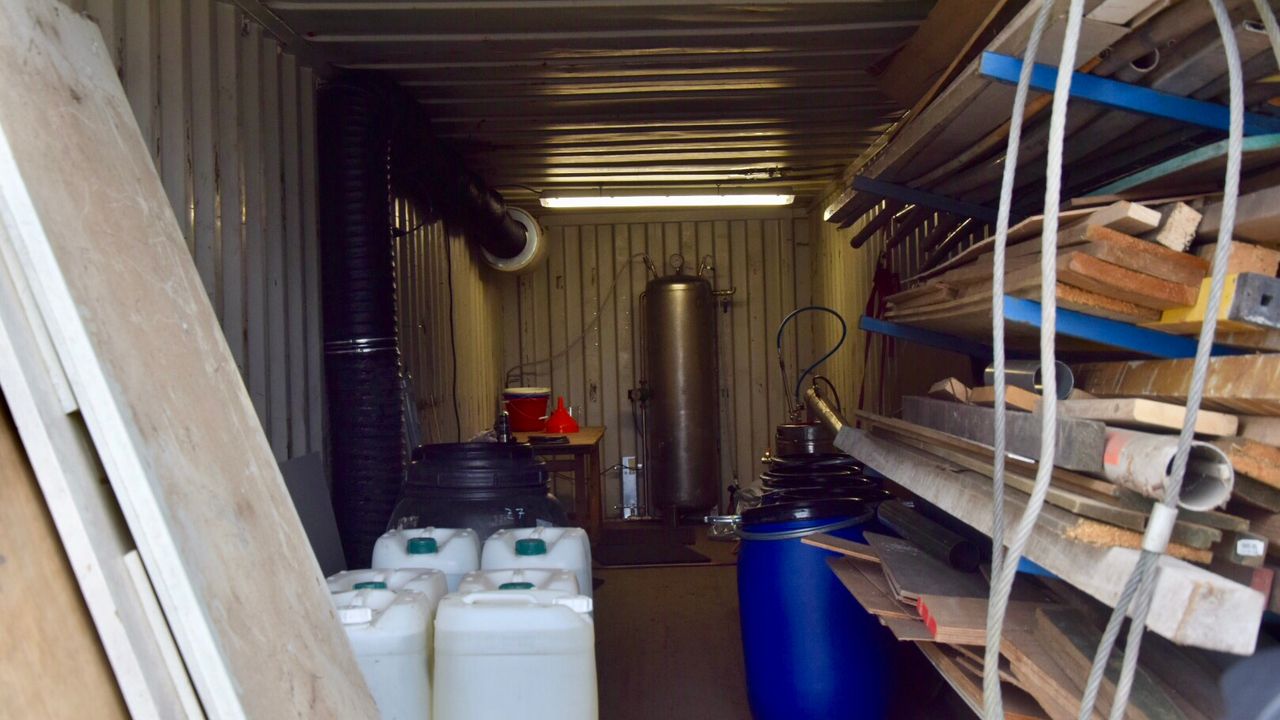 Specialisten van de politie ontdekten dat het lab klaar was om gebruikt te worden. In de zeecontainer stonden jerrycans met in totaal zo'n vierhonderd liter aan chemicaliën.