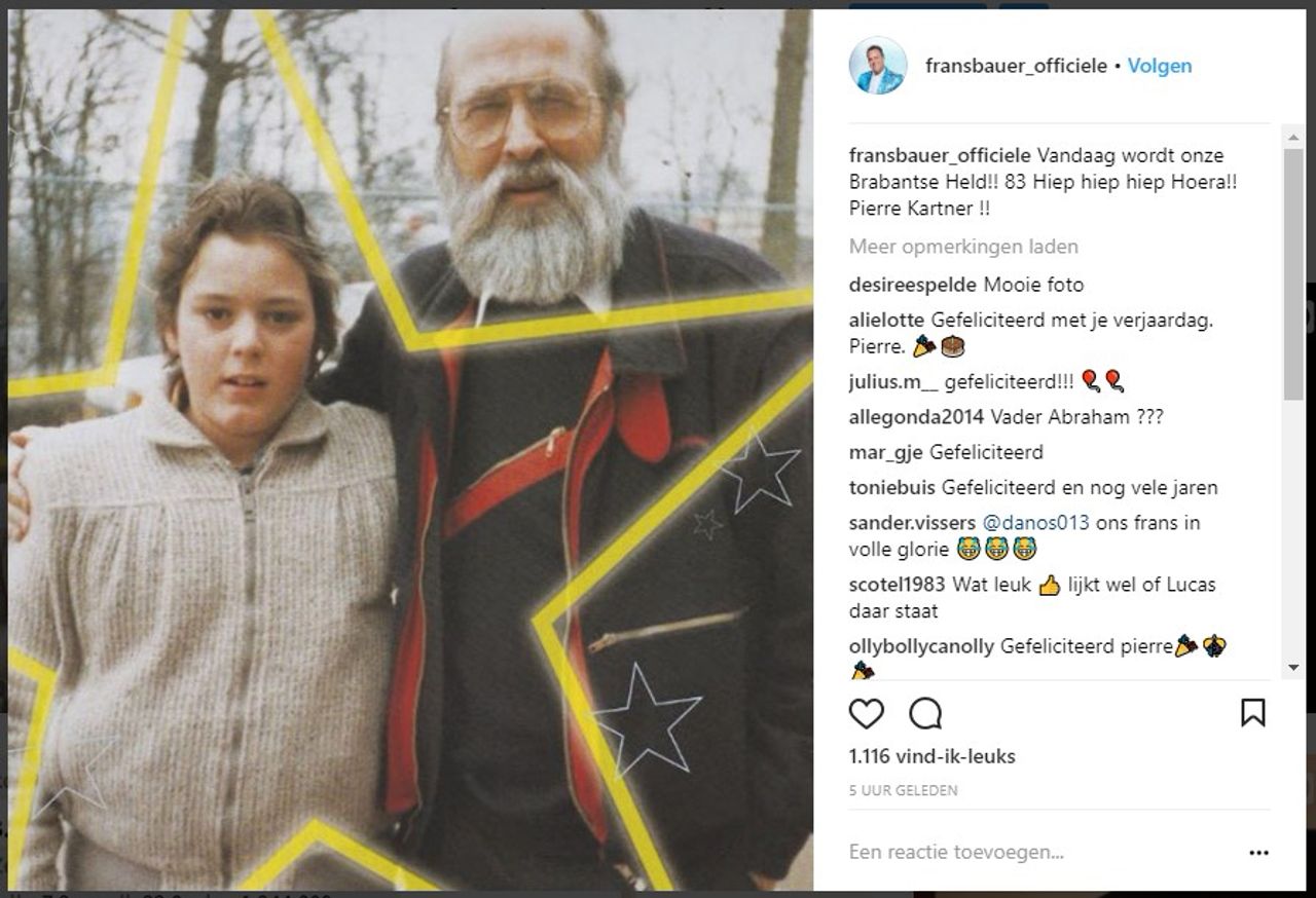Zanger Frans Bauer uit Fijnaart liet zich niet onbetuigd woensdag en zette een jeugdfoto met Vader Abraham op Instagram.