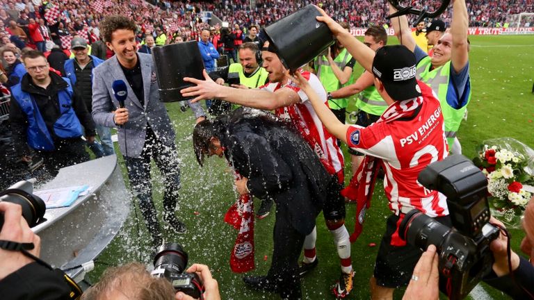 PSV-coach Phillip Cocu getrakteerd op nat pak [VIDEO]