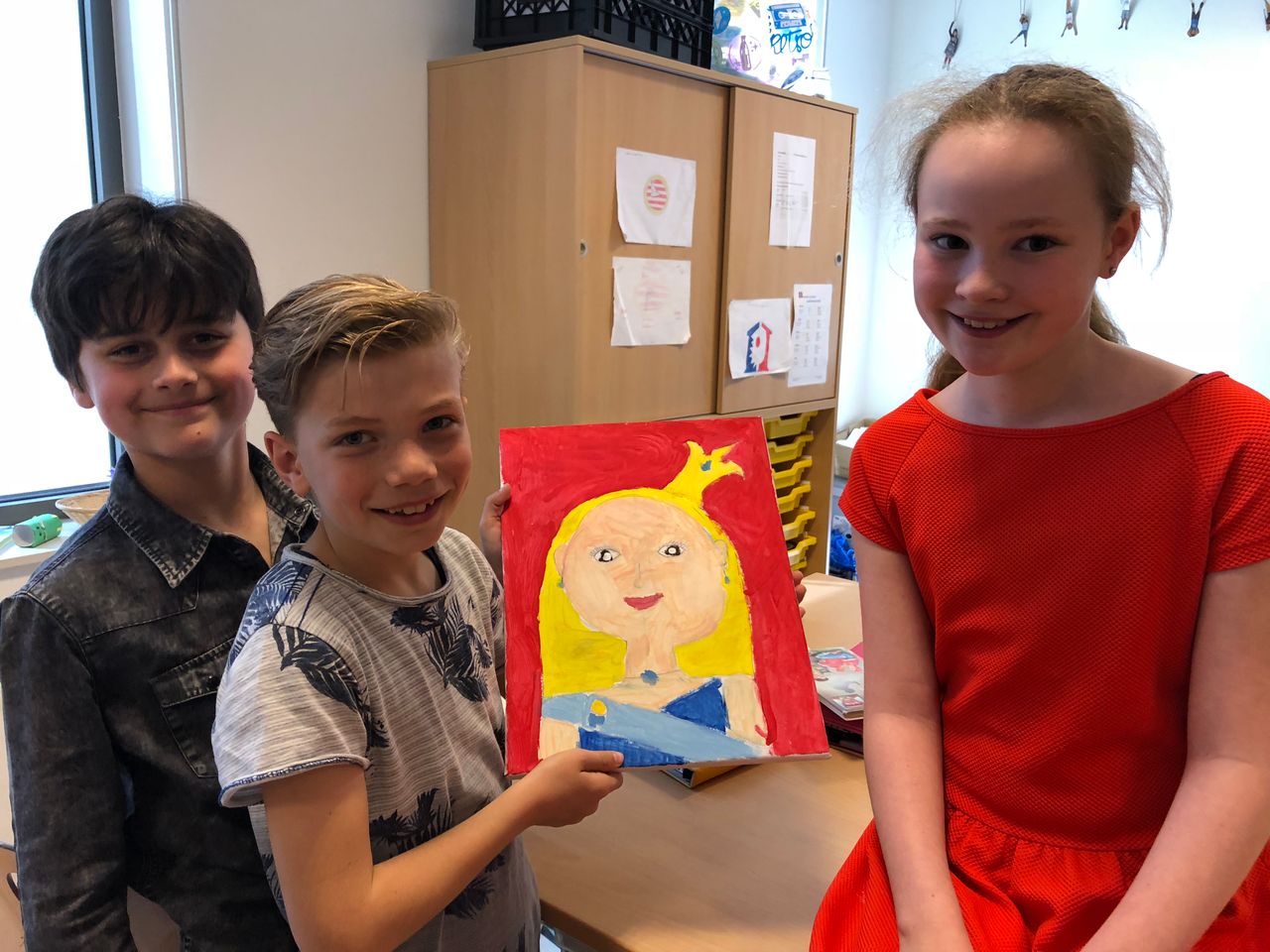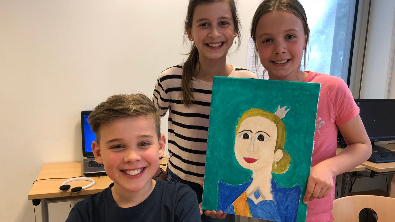 Ook Timo, Diego en Renée hebben koningin Máxima geschilderd. Renée: "We hebben een plaatje van Máxima opgezocht en daarop zagen we dat ze blond haar heeft en bruine ogen."
