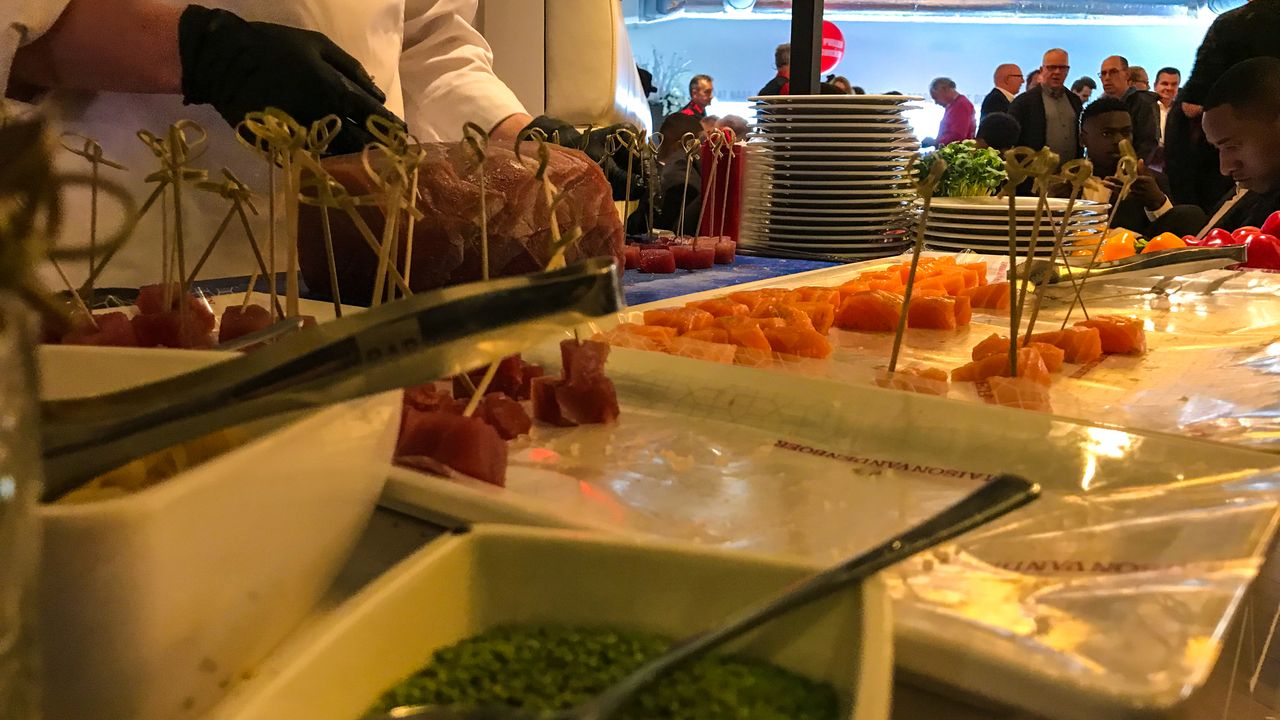 Eigenlijk wilde PSV de genodigden op het veld van het Philips Stadion ontvangen, maar vanwege de onzekere weersvoorspelling werd het feestje naar binnen verplaatst.