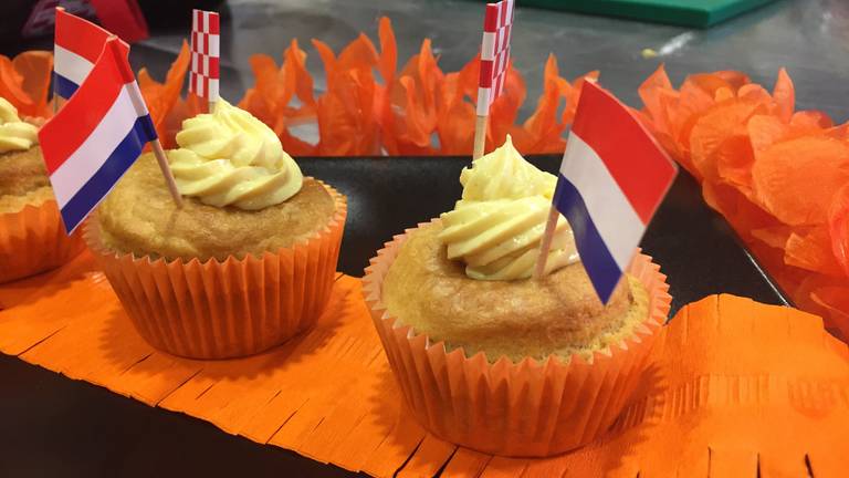 - Met een spuitzak kun je de cakejes dan mooi versieren. Zet een Nederlands én Brabants vlaggetje op de cakejes om het af te maken.