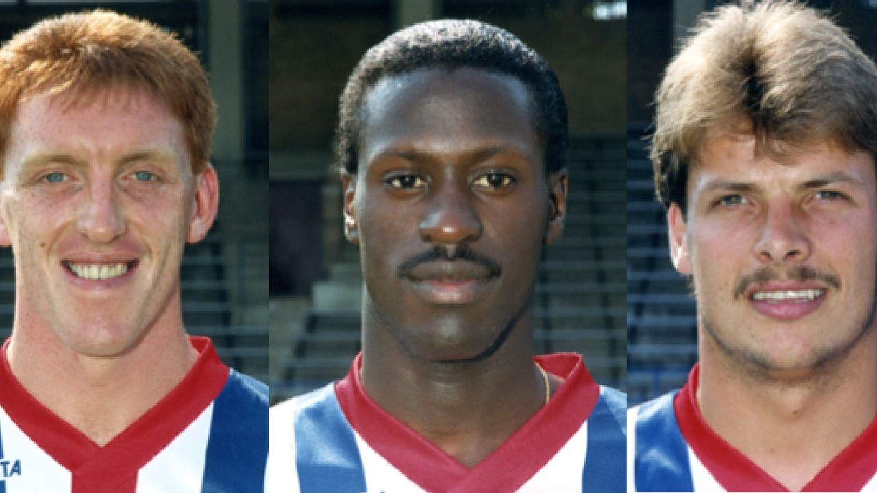 Van links naar rechts: John Feskens, John Veldman en Meindert Dijkstra in 1990.