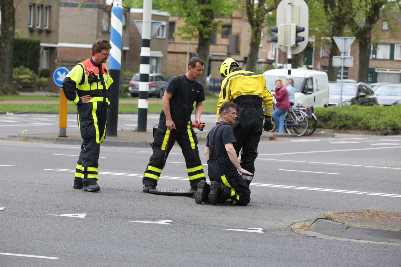 Reddingsoperatie voor vier jonge eendjes: brandweermannen in speciale pakken het riool in