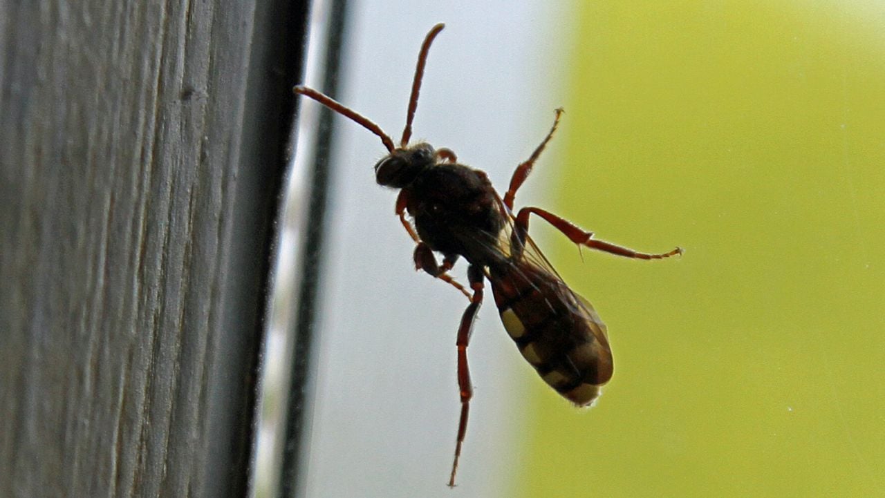 Op de foto van Elly Aarts zie je een kleine bij op het raam zitten. Elly dacht dat dit een gewone wespbij was. Het is volgens mij inderdaad een wespbij, maar niet de gewone. Zelf denk ik vanwege de rode poten aan een gewone dubbeltand. In totaal zijn er ongeveer 46 soorten wespbijen bekend in Nederland. Daarmee behoren ze tot het grootste geslacht parasitaire bijen. Wespbijen lijken heel erg op wespen. Dat is dan ook meteen hun verdedigingstactiek. Parasitaire wespbijen - zoals deze gewone dubbeltand - hebben geen korfjes of extra beharing aan hun poten hangen, want zij hoeven ook geen stuifmail te verzamelen. Ze leggen hun eitjes bij de eitjes van het slachtoffer. Zodra die uit de eitjes komen, doden de wespbijen de larven van de gastheer en eten vervolgens het stuifmeel en de nectar op. Wespbijen zijn dus gewoon bijen en geen wespen, want die eten insectenvlees. In dit geval parasiteren de gewone dubbeltanden op roodgatjes, dat zijn zandbijen.