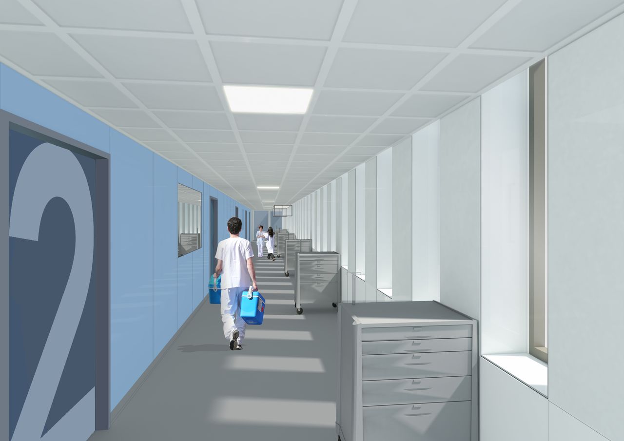 Vos loopt naar het vierde deel, het ‘interventie-centrum’. Hij loopt een van de zestien nieuwe operatiekamers binnen. “De apparatuur hangt er al deels in. Het is allemaal een stuk moderner. Ook is het fijn om alle operatiekamers zo dicht bij elkaar te hebben. ”